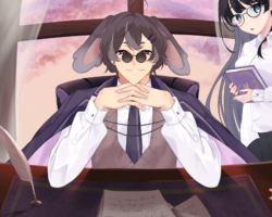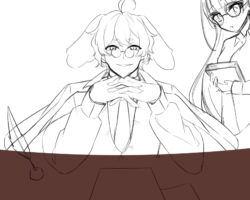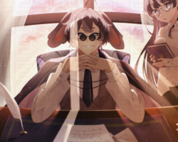 Skeb形式にて「机に座って手を組み、怪しげに笑っている」ところのお写真を撮らせていただきました。